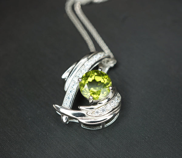 Genuine Peridot Necklace Angel Wing Necklace 18KGP @ Sterling Silver - August Birthstone - Natural Protective Green Gemstone Jewelry #911