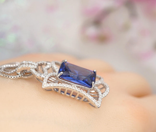Large Baguette cut Tanzanite Jewelry Royal Flower Style
