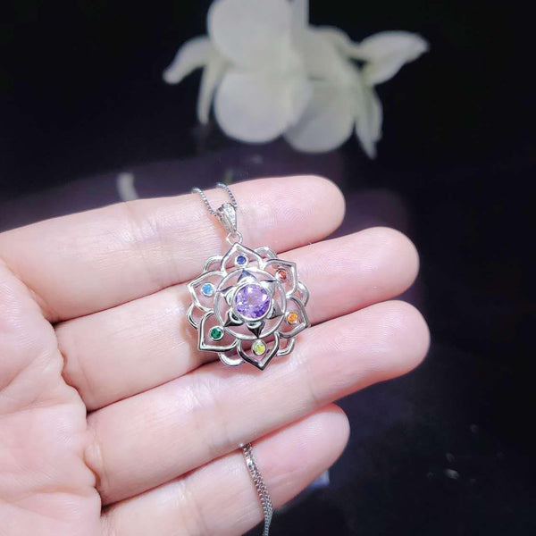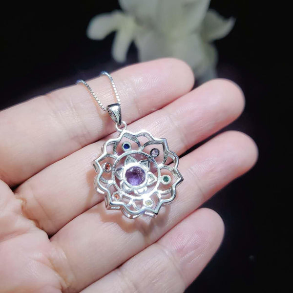 The 7 chakra necklace represents the 7 spiritual forces in the human body, including the physical elements of the earth, water, fire, air & ether (space), and the elements of light and cosmic energy.