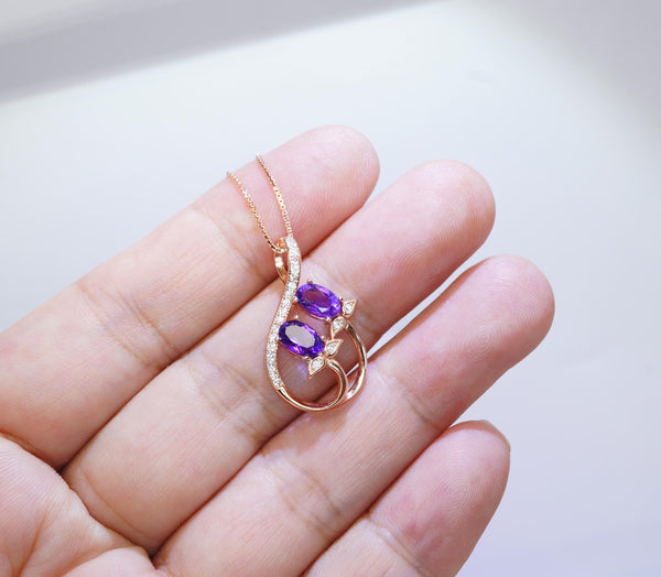 Materials: Genuine Amethyst, 925 Sterling silver, rose gold.