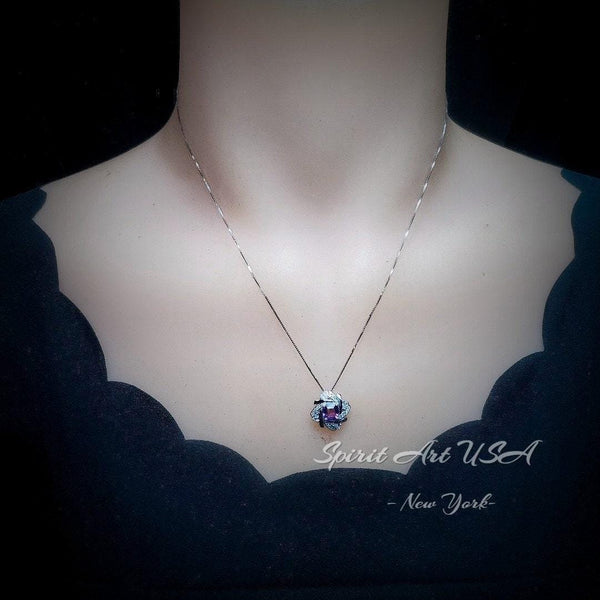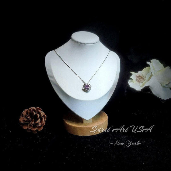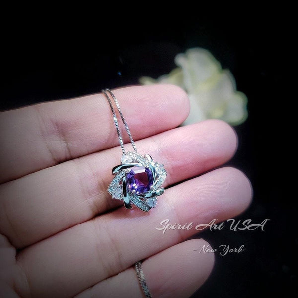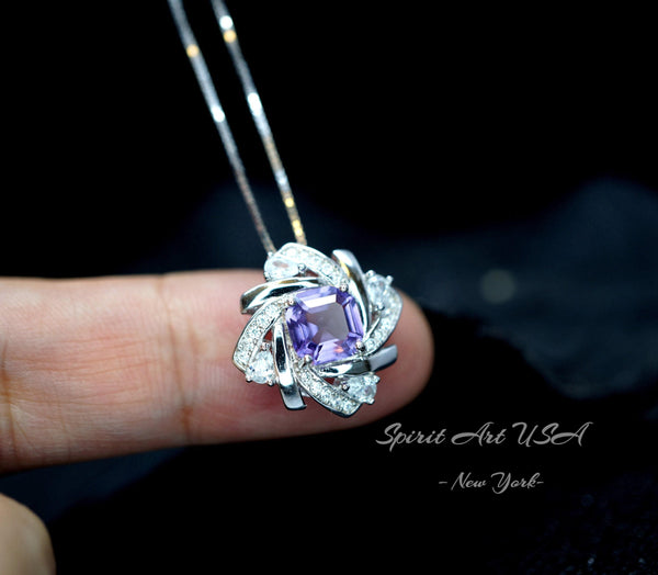 Genuine Amethyst Necklace - Tiny Square Scissor Cut Natural Amethyst Pendant - 18KGP @ Sterling Silver - February Birthstone #416