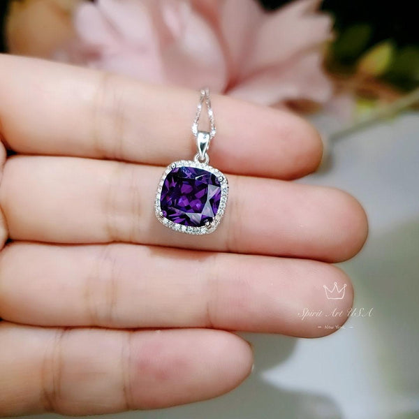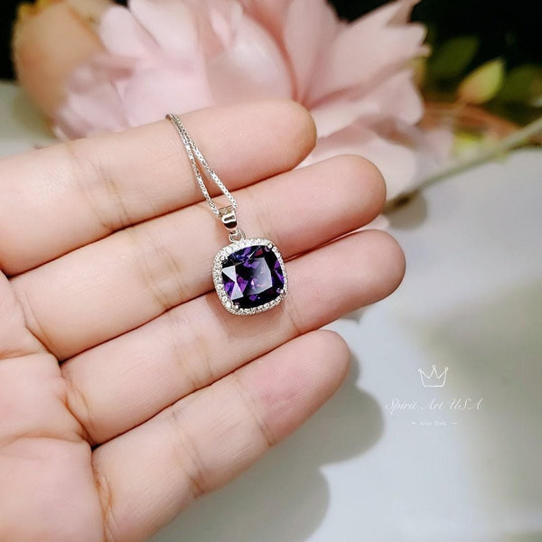 Large Amethyst Square Jewelry unique Artisan design full sterling silver made