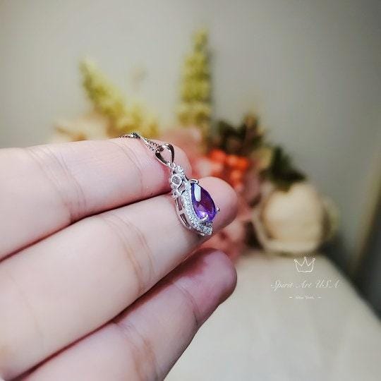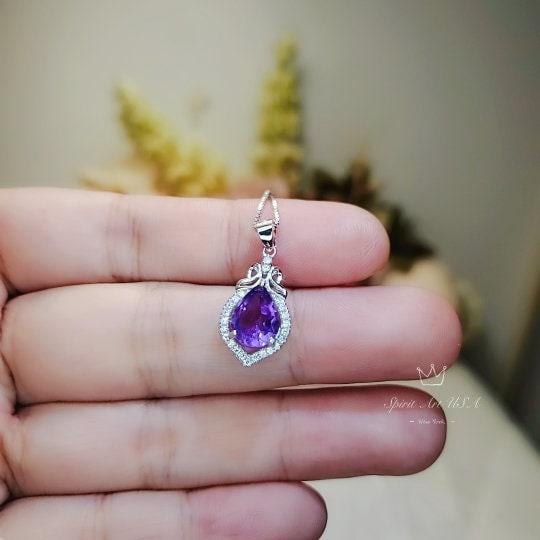 Tiny Dainy Genuine Amethyst Jewelry unique Artisan design full sterling silver made