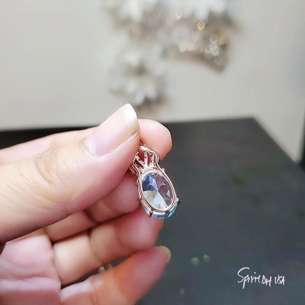 Large Oval Cut Blue Aquamarine Jewelry Rose gold Crown Style