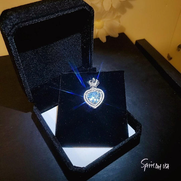 Large Blue Aquamarine Jewelry Double Halo Heart Pendant Style