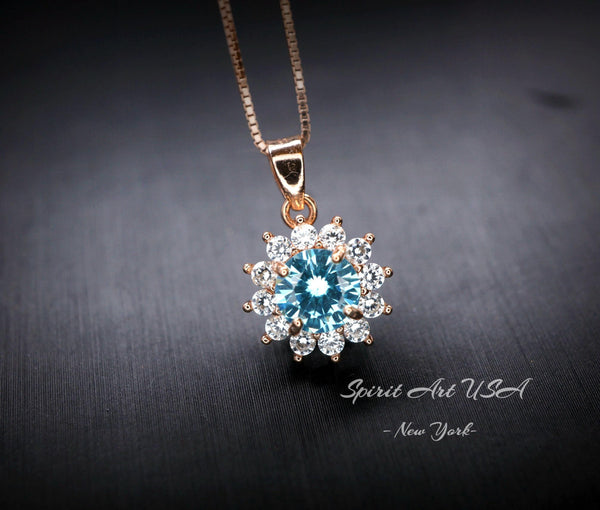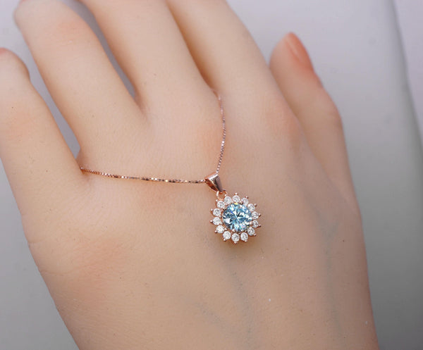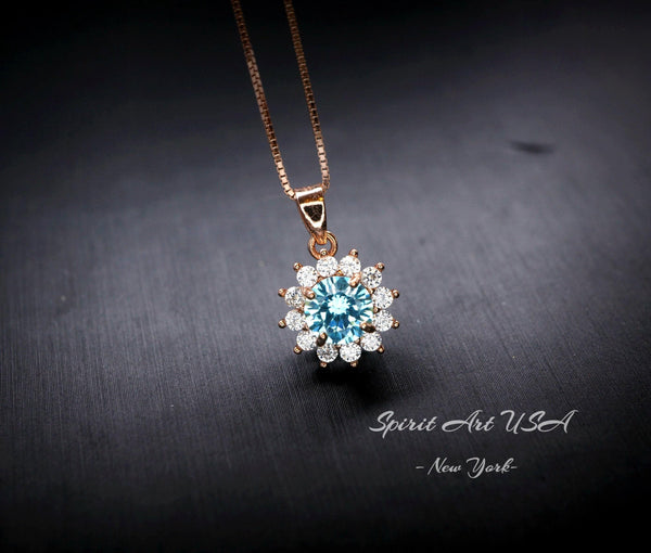 Delicate blue aquamarine necklace Tiny Halo solitaire aquamarine necklace