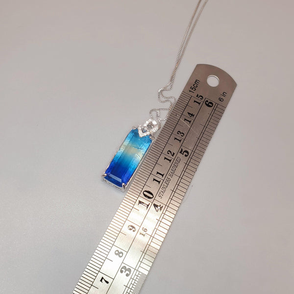 ◆Main stone:9*24 mm lab-created blue rainbow tourmaline gemstone