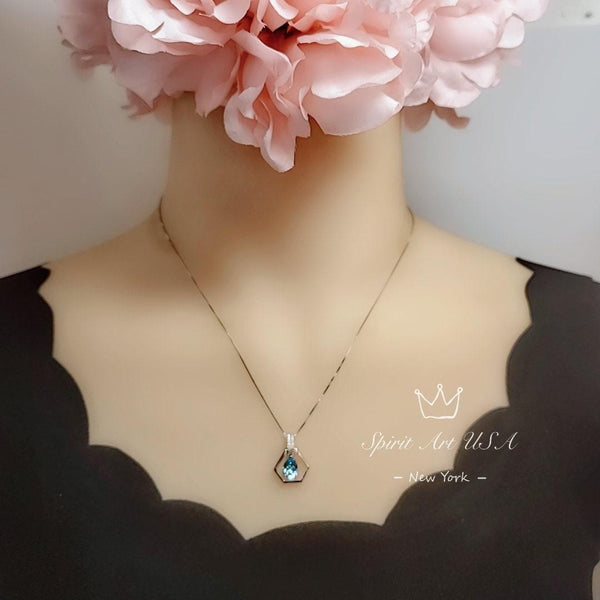 Materials: 925 sterling silver, Aquamarine Gemstone, rose gold.