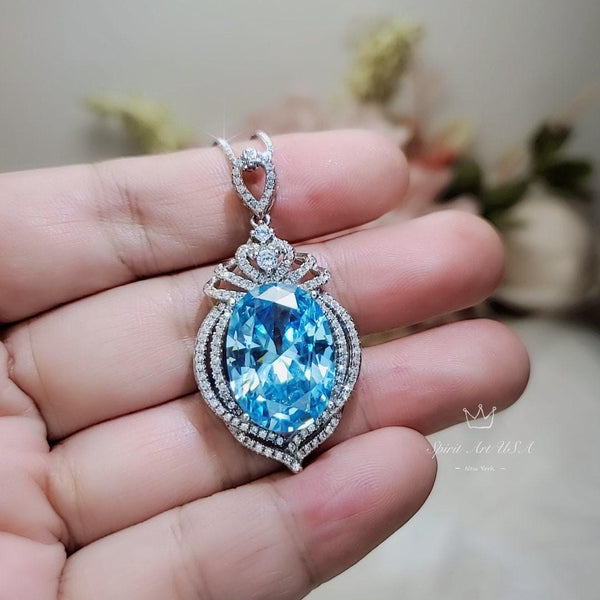 Large Aquamarine Jewelry Diamond crown Style Oval Cut