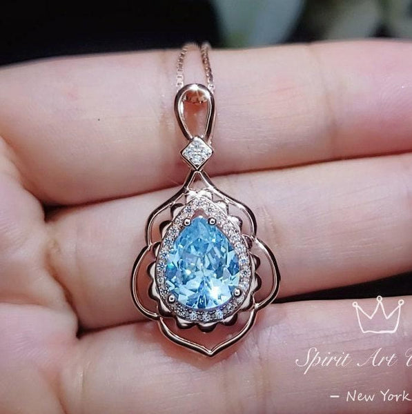 Main Stone: 7*10 mm Lab created aquamarine gemstone