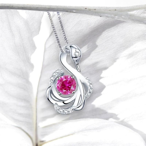 Dainty Pink Sapphire Jewelry sterling silver swan style