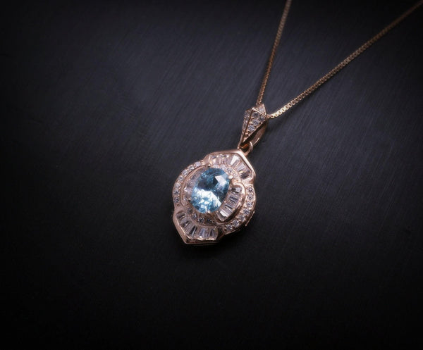 Aquamarine Necklace - 18KGP @ Sterling Silver - Blue Aquamarine Jewelry Rose gold Spiritual flower petal Pendant #500