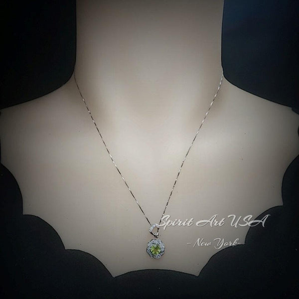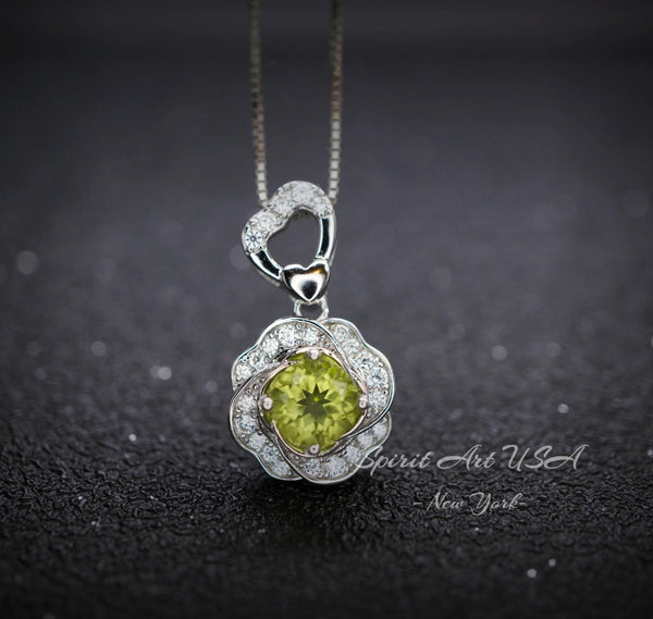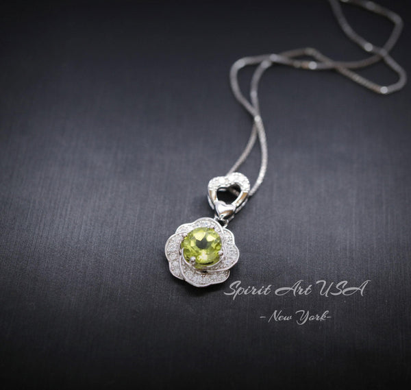 Genuine Peridot Necklace - Green Peridot Rose Flower Style - 18kgp Sterling Silver - Dainty Natural Green Peridot Pendant #454