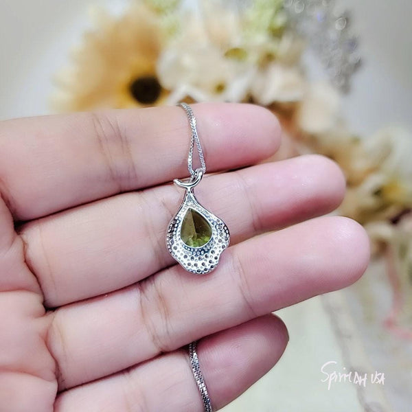 Natural Peridot jewelry Teardrop Cut Flower Petal Style