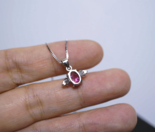 Introduce a touch of elegance to your jewelry collection with our Tiny Silver Penguin Necklace, featuring a stunning lab-created red ruby pendant. This dainty and whimsical piece is crafted in high-quality 925 sterling silver, showcasing a beautifully designed penguin that adds a unique charm to any outfit.