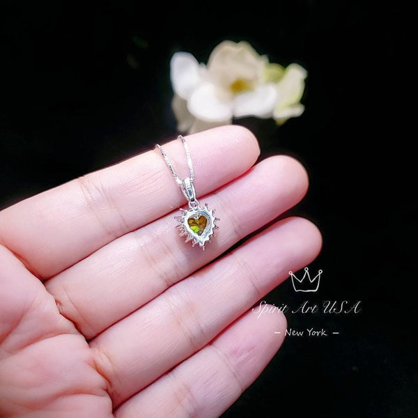 Green Heart Peridot Jewelry unique Artisan design full sterling silver made