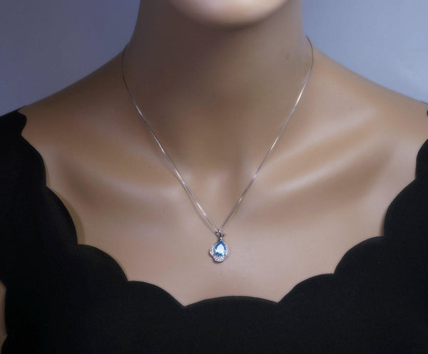 Swiss Blue Topaz Necklace - Sterling Silver High Quality Leaf Flower Petal Blue Topaz Pendant #326