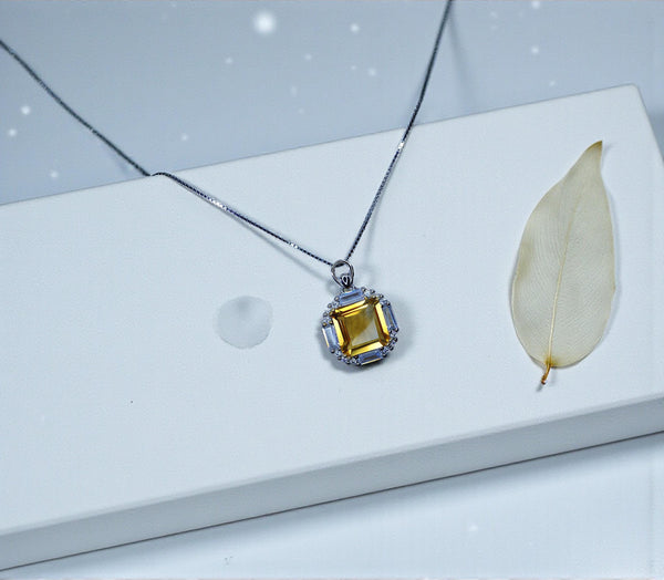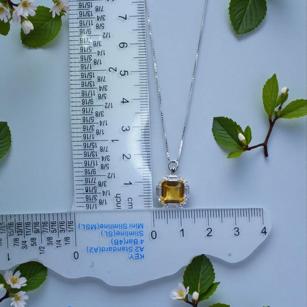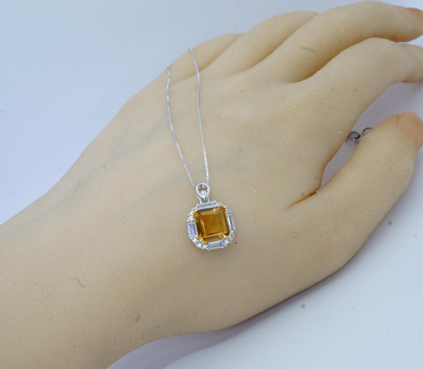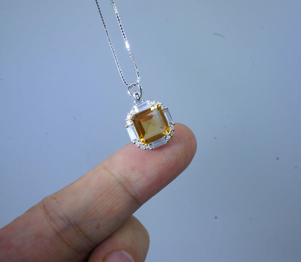Genuine Citrine Necklace - Sterling Silver Square Citrine Gemstone Pendant - 3 CT November Birthstone Jewelry
