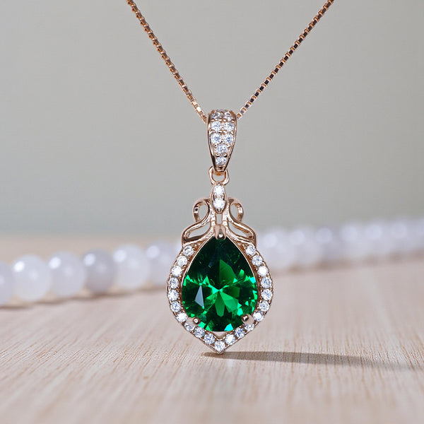 Dainty Elegant Teardrop Emerald Necklace
