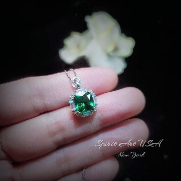 Dainty Square Emerald Jewelry Diamond Halo Style