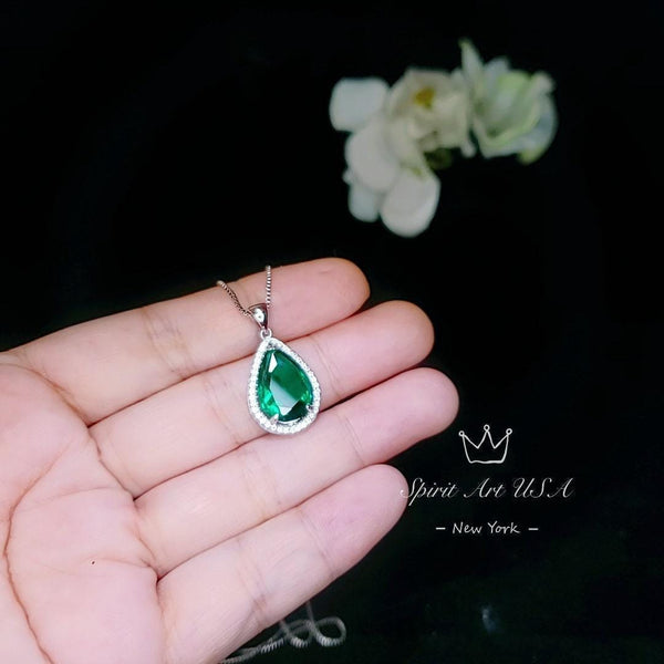 Main stone:10*14mm Lab created Emerald Gemstone 6.5CT