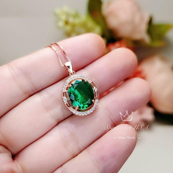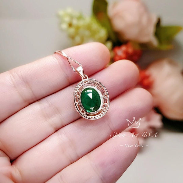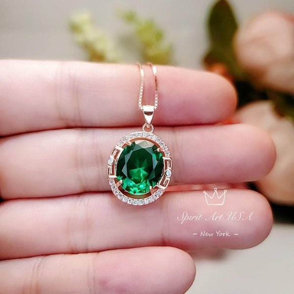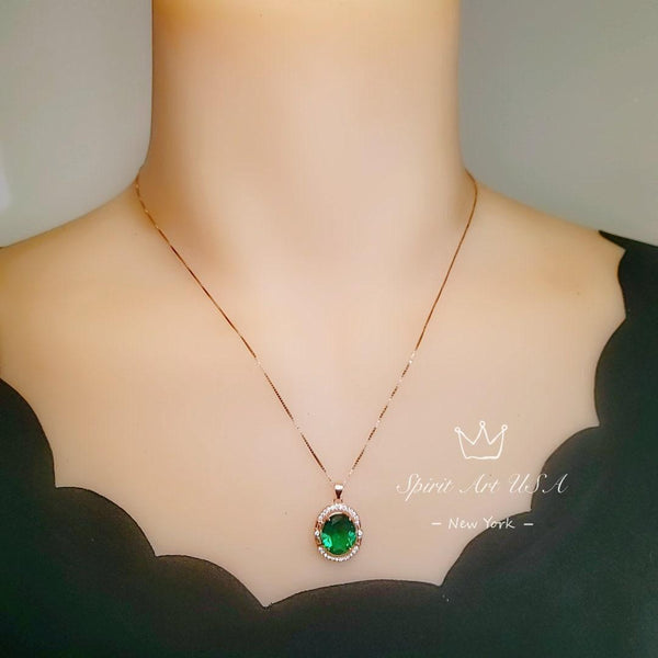 Emerald gemstone Jewelry Large Oval Rose Gold Style