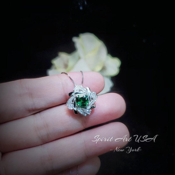 Tiny Square Emerald Necklace - 18kgp @ Sterling Silver - Gemstone Windmill Necklace - Mini Green Emerald Jewelry #304