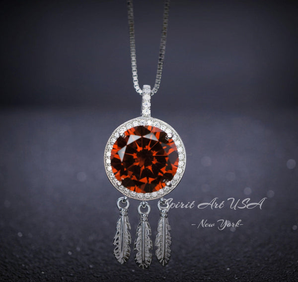 Large Spessartite Garnet Necklace - Dream Catcher Pendant - 18kgp @ Sterling Silver - Red Orange Garnet Jewelry #691