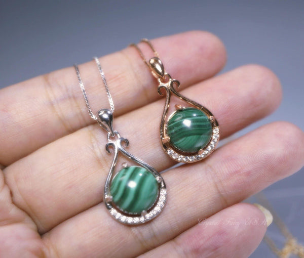 Green Malachite Fine Gemstone Necklace rose gold made with sterling silver