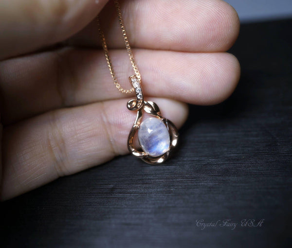Genuine tiny rose gold moonstone necklace