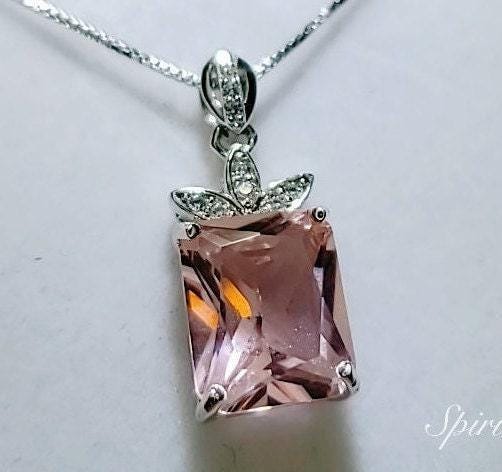 Large Morganite Gemstone Necklace Rectangle Style Baguette Cut