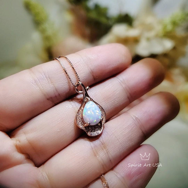 Dainty Opal Jewelry teardrop rose gold leaf petal Style