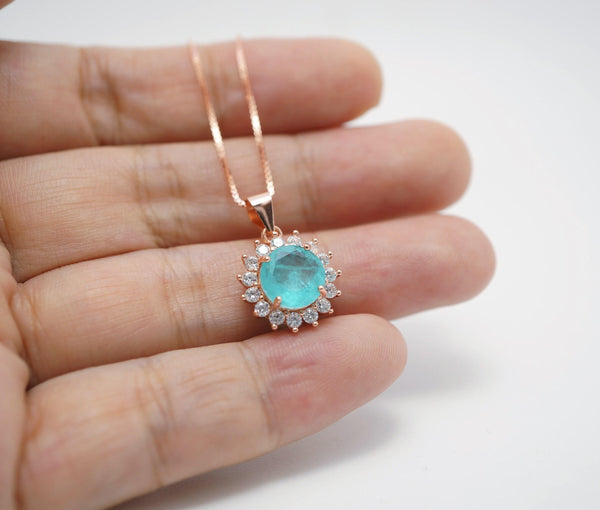 Materials: Paraiba Tourmaline, Rose gold coated sterling silver, rose gold.