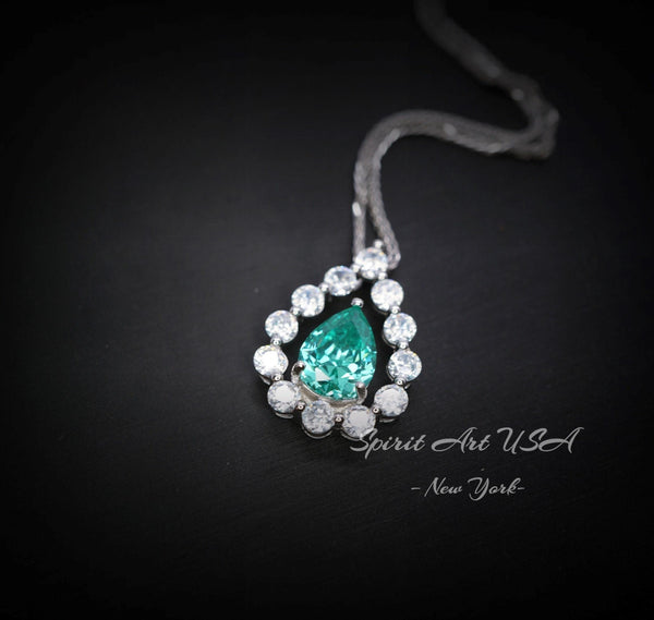 Dainty Green Paraiba Jewelry Diamond Halo Style Pear Cut