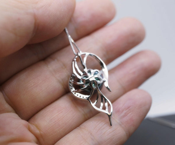 Genuine Black Pearl Necklace - Sterling Silver Leaf Single Pearl Jewelry #467