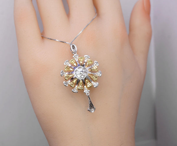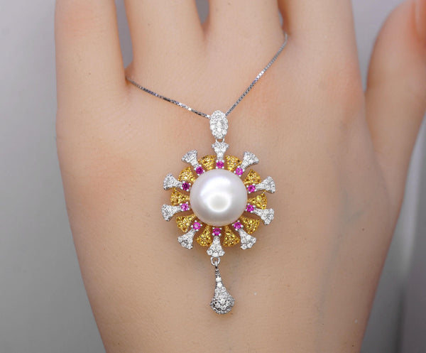 Natural Large White Pearl Necklace, 18KGP @ Sterling Silver - Sunflower Sun Sunshine Style Fresh water Pearl Jewelry #640