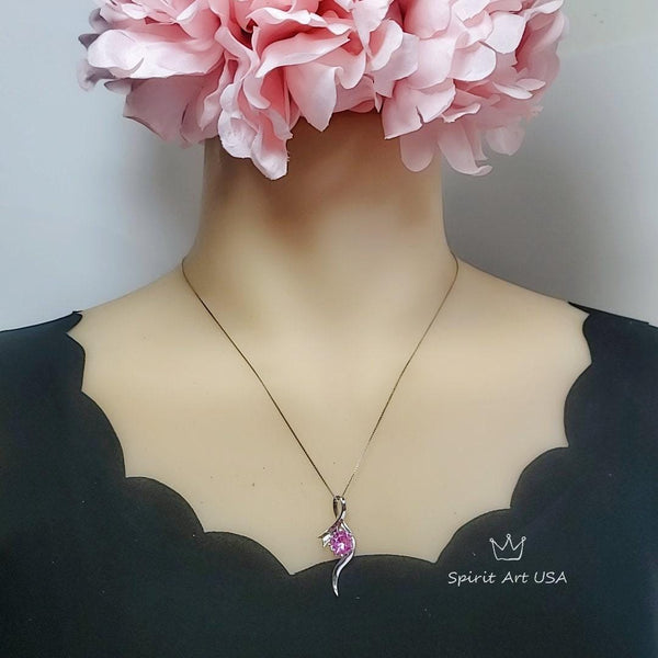 Luxury Pink Tourmaline Necklace White Gold coated Sterling Silver Swirl Infinity Style Pendant - 2 CT Lab created Vivid Pink Gemstone #936
