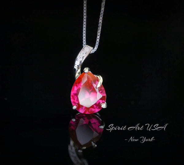Classic Simple Ruby Necklace - 18KGP& Sterling Silver - Teardrop Red Ruby Pendant - July Birthstone - Pear 3.5 CT Large #683