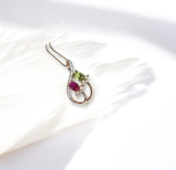 Materials: ruby, peridot, sterling silver, rose gold.