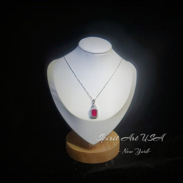 Ruby Necklace Rectangle red Pendant - 18KGP @ Sterling Silver - July Birthstone adjustable chain #299