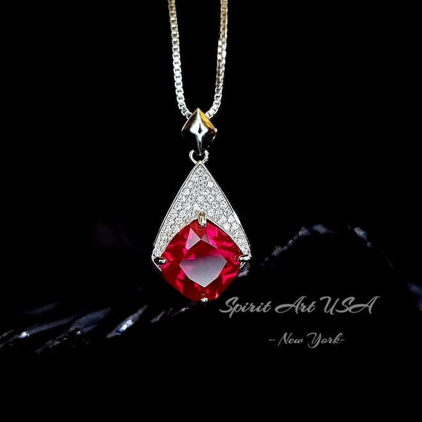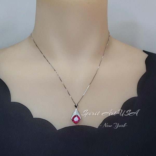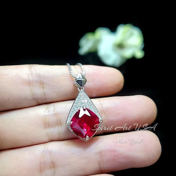 Rhombic Style Large Red Ruby Necklace