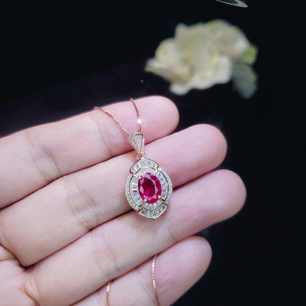 Ruby Necklace - Ruby Pendant - Rose gold @ Sterling Silver - July Birthstone - Adjustable Chain #414