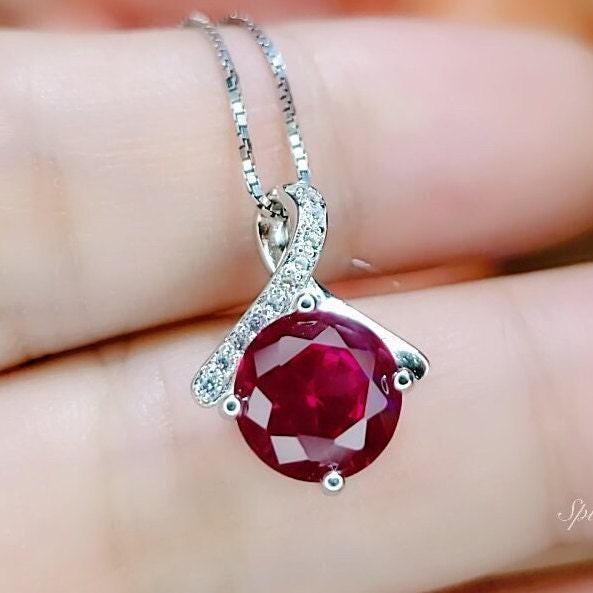 Tiny Red Ruby Necklace • Gemstone Bow Necklace • 2CT Bowknot Ruby Pendant • Sterling Silver Infinite Minimalist Red Gemstone Jewelry #107
