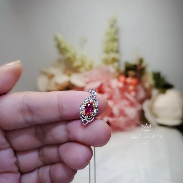 Tiny Thorn Apple Ruby Necklace - 24k Gold decorated Sterling Silver Minimalist Oval Ruby Pendant - Blessing Buddha Hand Jewelry #112