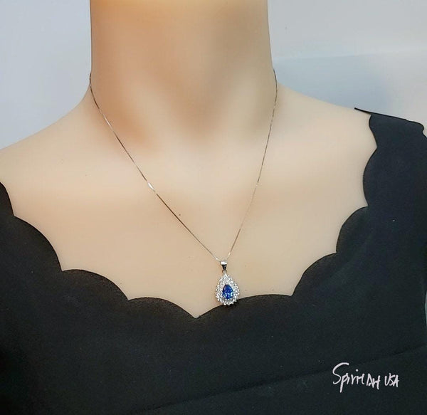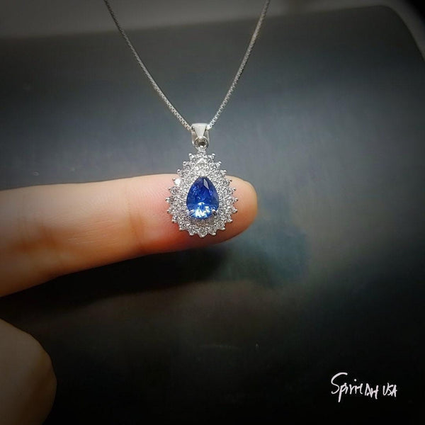 Dainty Teardrop Blue Sapphire Jewelry Double Halo