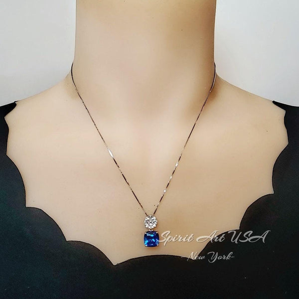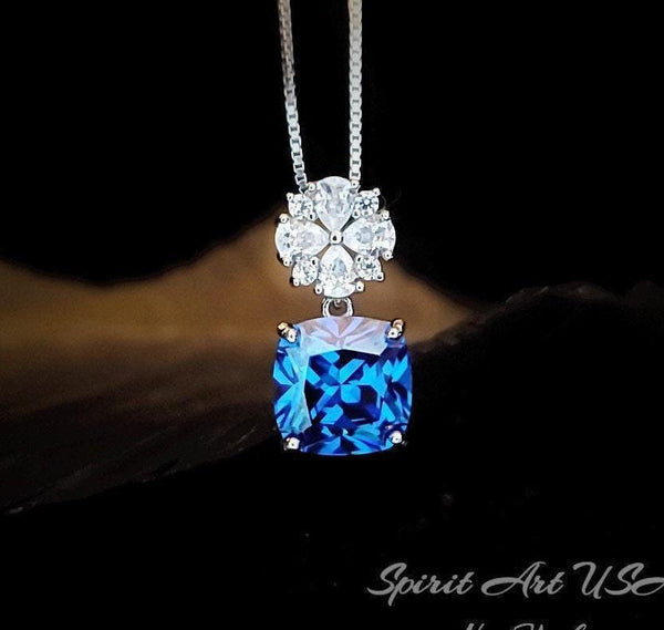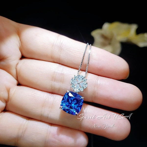 Large Cushion Blue Sapphire Jewelry Tiny Four-leaf clover Style