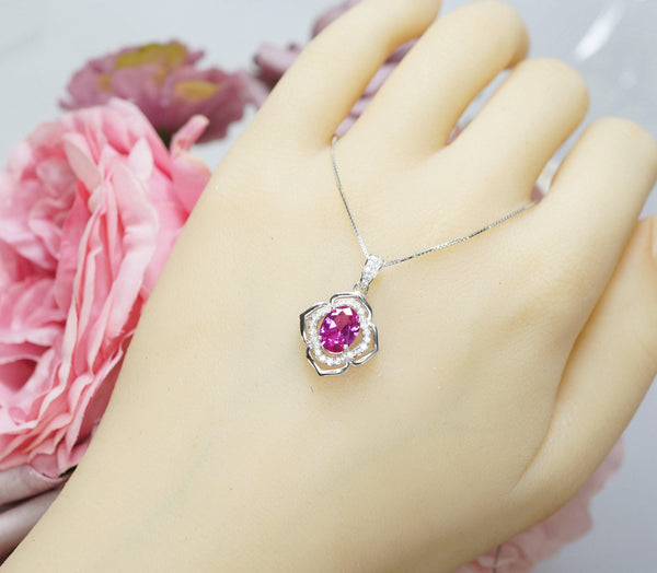 Blue Sapphire Pendant - Sterling Silver Diamond Flower OF Life Ruby Necklace - Birthstone Pink Sapphire Sunstone garnet Citrine Jewelry