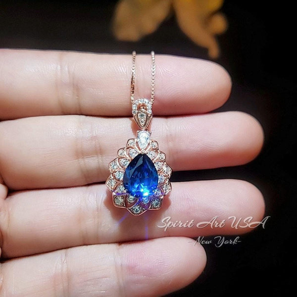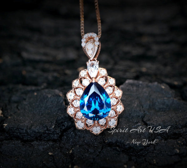 Large Blue Sapphire Jewelry Rose Gold layered Lily Flower Style