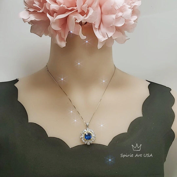Blue Sapphire Jewelry Large gordeous Diamond Surround Square Style
