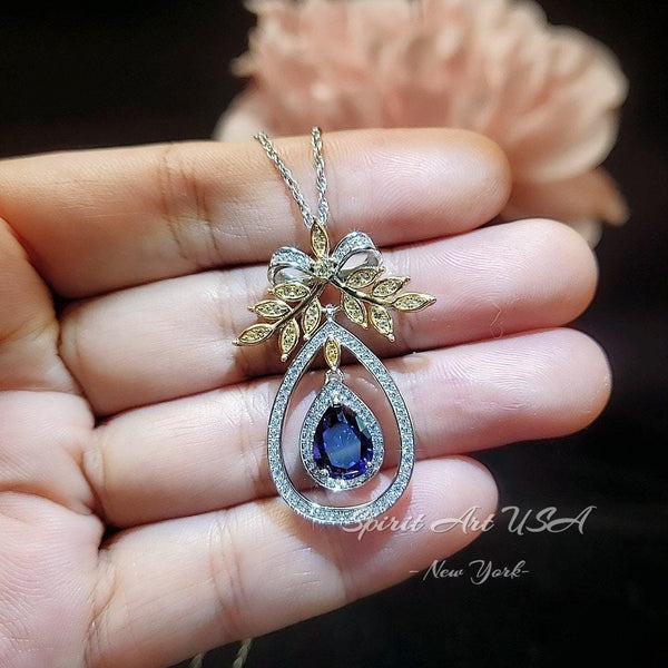 Large Teardrop Blue Sapphire Jewelry Gold tree of life Style